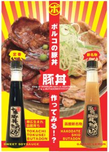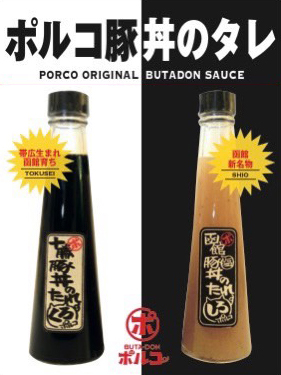 メインのタレは黒い「十勝豚丼のたれ」と白い「函館塩豚丼のたれ」の二種類。